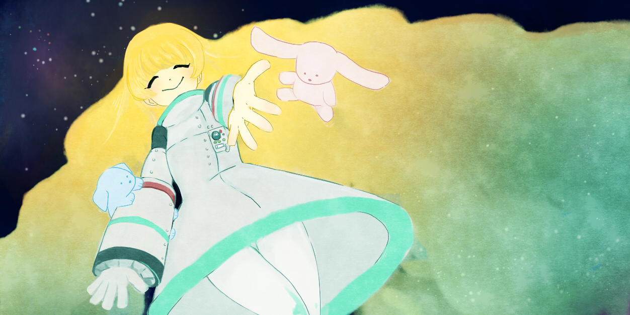 上の宇宙っぽい子のは、下書きの上に筆でちまちま色を載せて塗ったもので